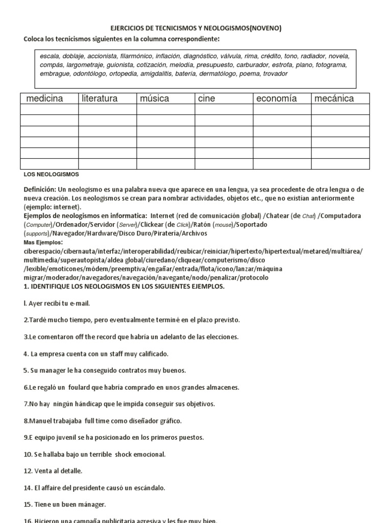 Ejercicios De Neologismos Y Tecnicismos Informatica Tecnologia