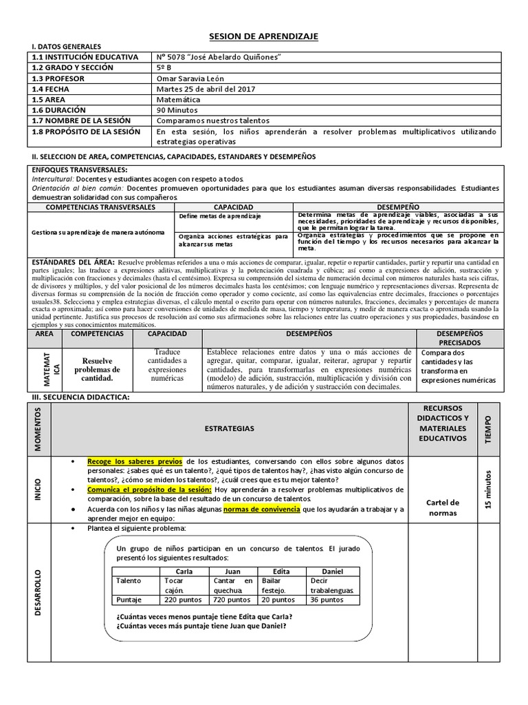 Http Www Minedu Gob Pe Rutas Del Aprendizaje Sesiones2016 Pdf Primaria Unidad2 5 Quinto Grado 5 Sesiones Matematica U2 5to Grado Mate S2 Pdf