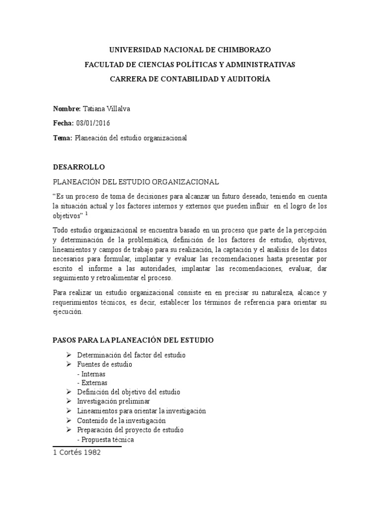 Planeacion Del Estudio Organizacional Planificacion Gestion De