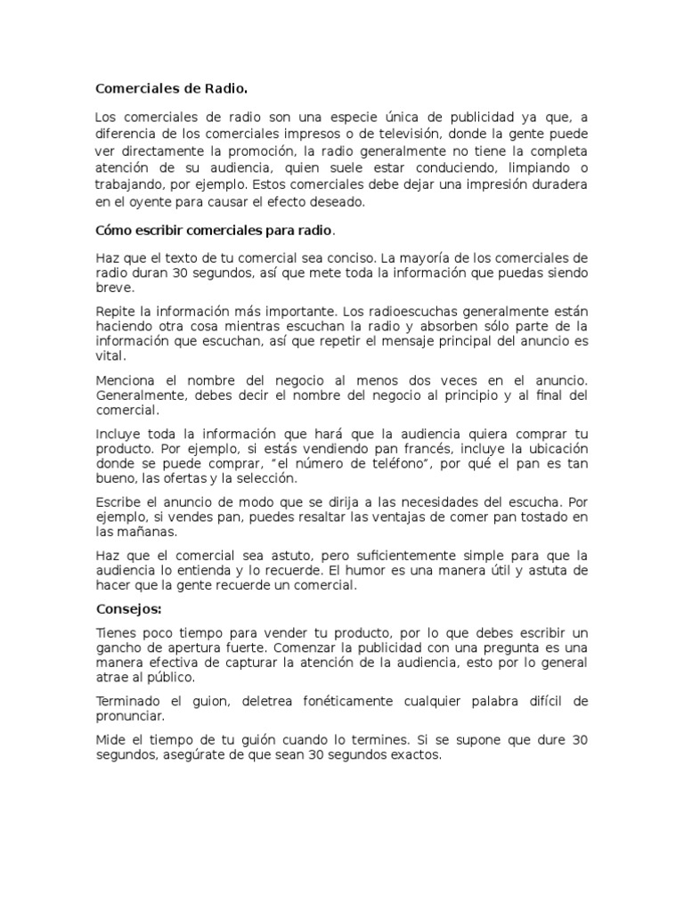Esta es información que podemos entregar  Guion De Comercial De Radio Ejemplo.