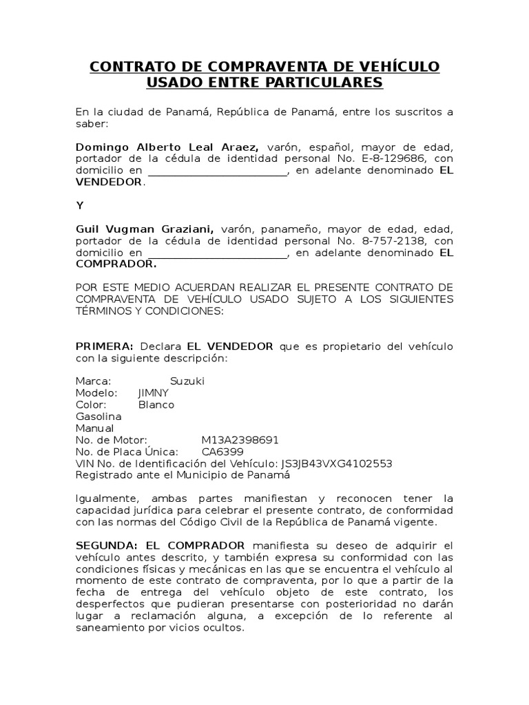 Contrato De Compraventa De Vehiculo Usado Entre Particulares