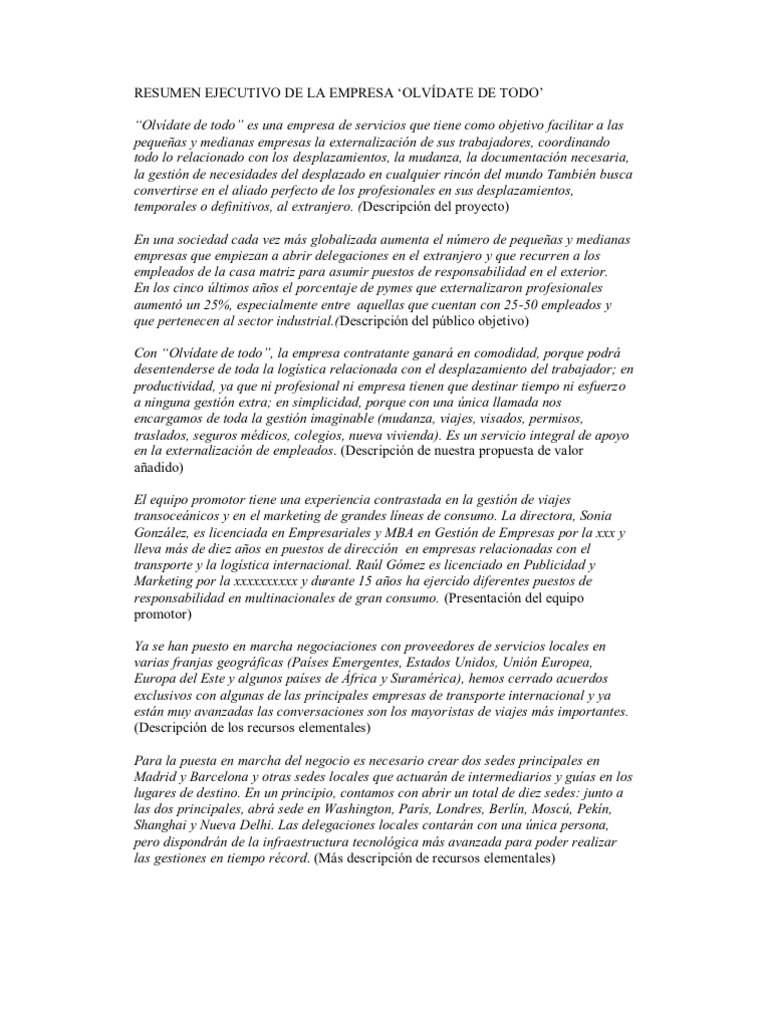 Ejemplo De Resumen Ejecutivo Outsourcing Pequenas Y Medianas
