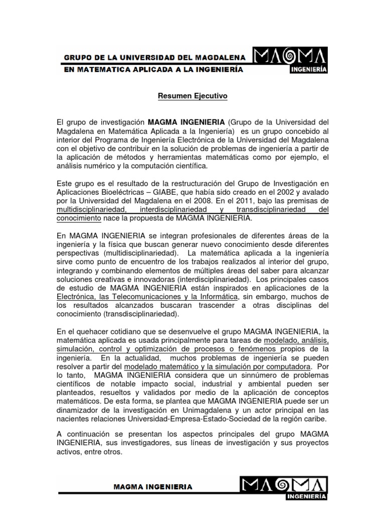 Resumen Magma Lineas Proyectos V1 Fisica Y Matematicas Matematicas