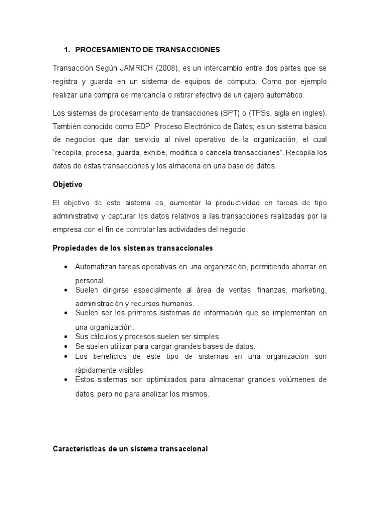 Sistemas De Procesamiento De Transacciones Caracteristicas Y