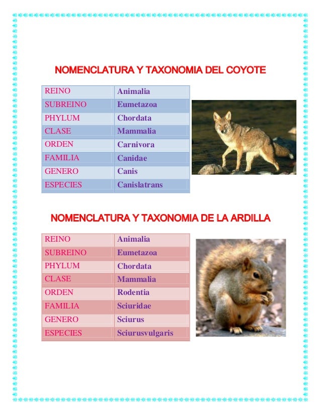 Taxonomia De Animales Y Vegetales