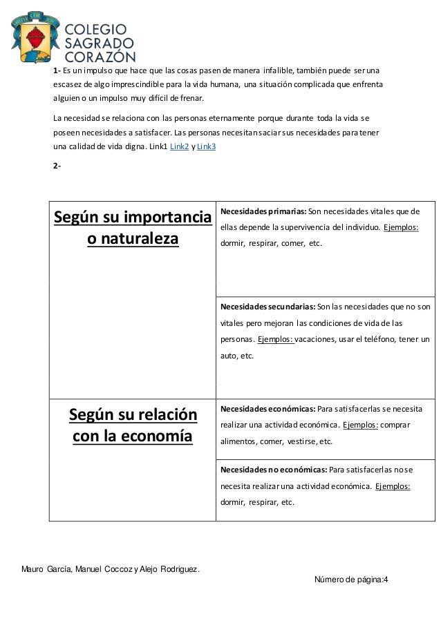 Economia Necesidades Primarias Y Secundarias