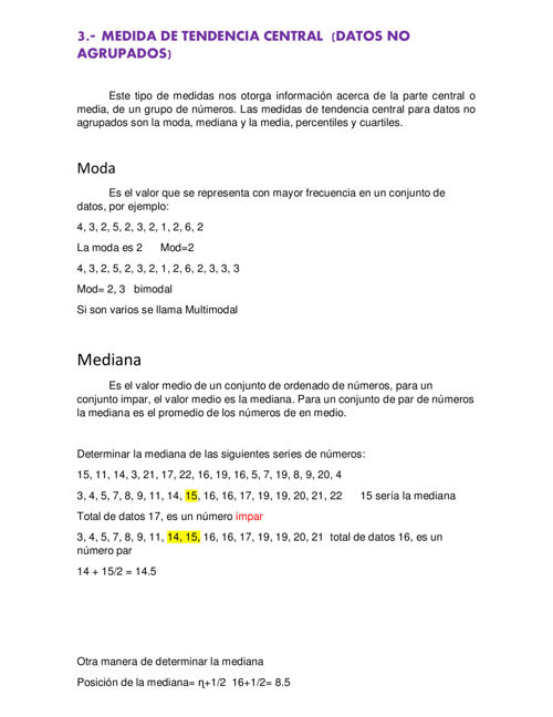 Medidas De Tendencia Central Para Datos No Agrupados Media