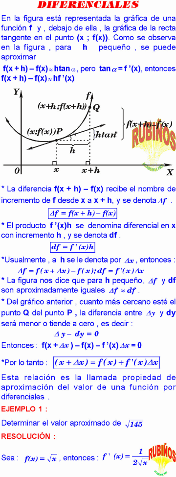 55 calculo de aproximaciones usando la diferencial se define en esta sección el concepto de la diferencial que nos permite representar la derivada como un cociente y hallar el valor aproximado de la variación de una función alrededor de un punto.