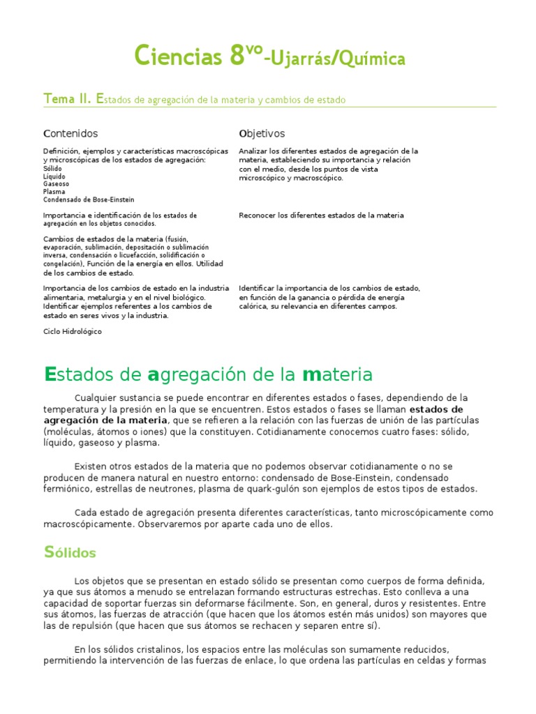 Tema Ii Estados De Agregacion De La Materia Y Cambios De Estado