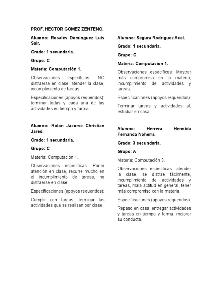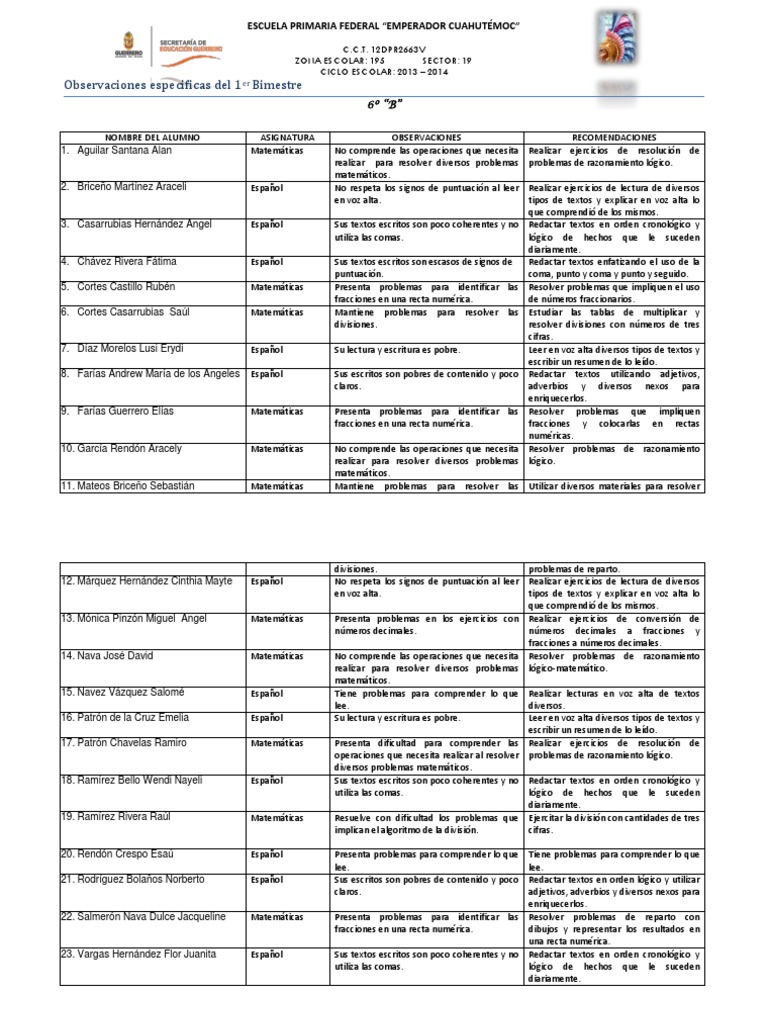 Observaciones Y Recomendaciones Por Bimestre Y Asignatura Para El