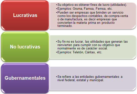 Habitualmente se entiende por empresas a las organizaciones con fines de lucro es decir aquellas que tienen como objetivo principal el de expandir y multiplicar un capital integrado por los socios con la premisa básica de que los beneficios superen a los costos cosa de obtener una ganancia neta.