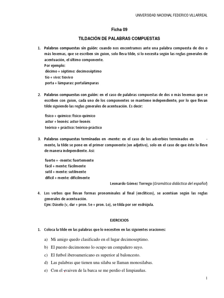 Ficha 09 Acentua Palabras Compuestas Linguistica Gramatica