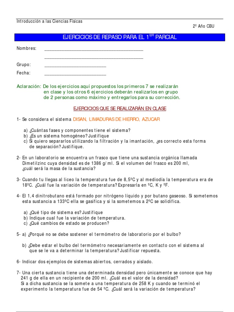 Ejercicios De Repaso Para El Parcial Densidad Liquidos