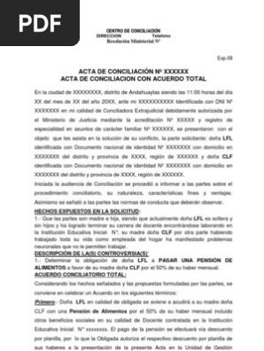 Modelo De Acta De Conciliacion Sobre Alimentos Para La Madre En