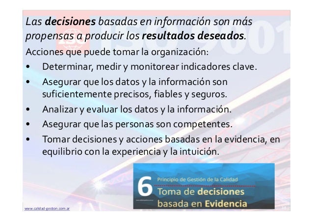 Toma De Decisiones Basadas En La Evidencia Principios Iso 9001 2015