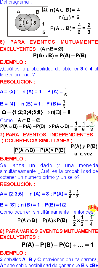 Por ejemplo en el lanzamiento de un dado los eventos b 2 y c 5 6 son mutuamente excluyentes por cuanto b c ejemplo.