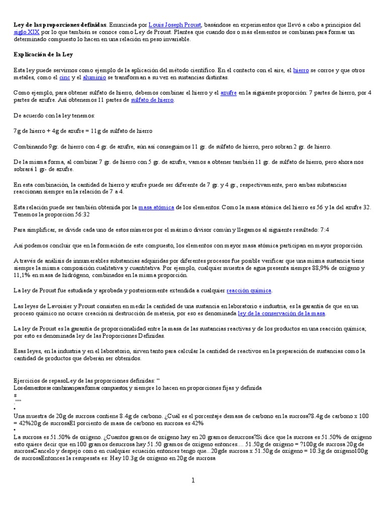 Ley De Las Proporciones Definidas Tareas Universitarias