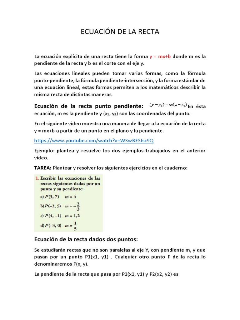 Ecuacion De La Recta Punto Pendiente Ejercicios Resueltos