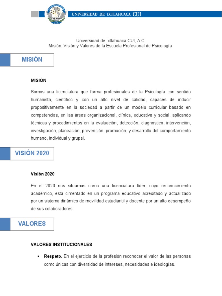 Mision Vision Y Valores Docx Sicologia Y Ciencia Cognitiva