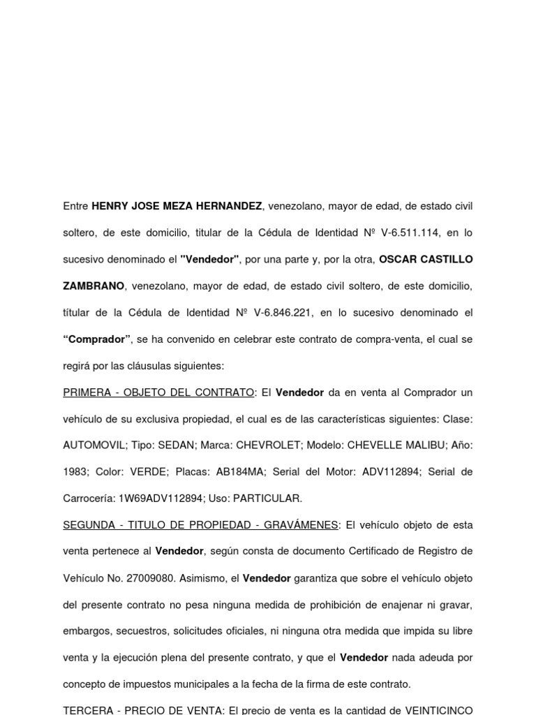 Estas son recomendaciones sobre Ejemplo De Un Contrato De Compraventa De Un Carro.