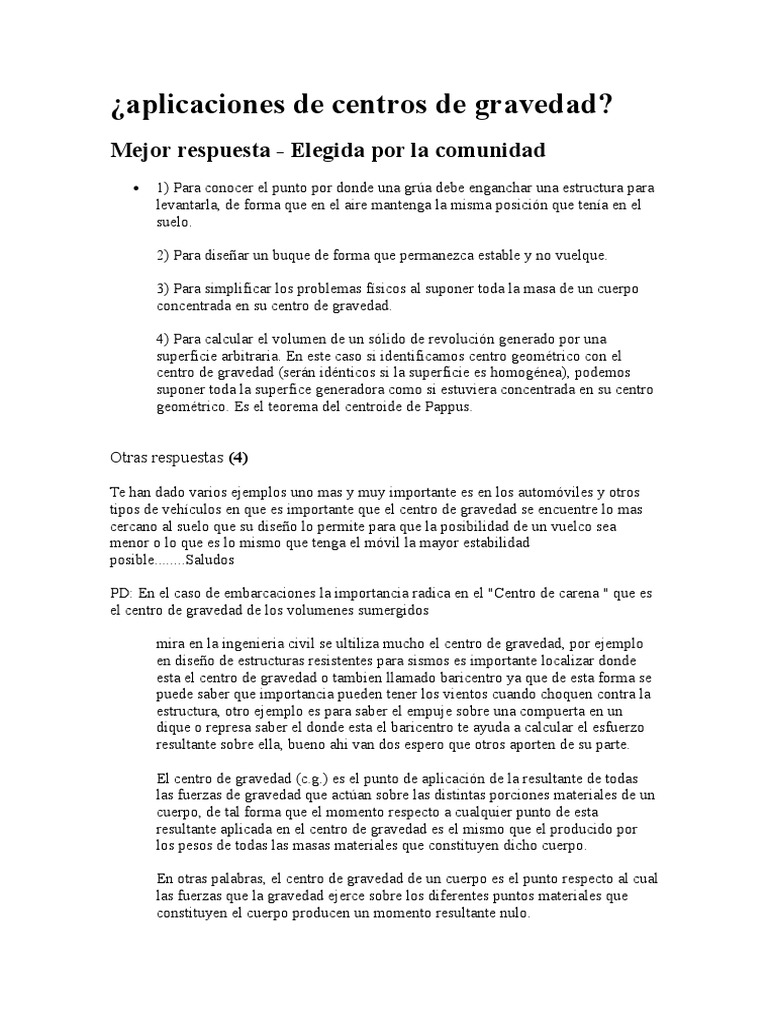 Fisica Aplicada Ejercicios De Centro De Gravedad