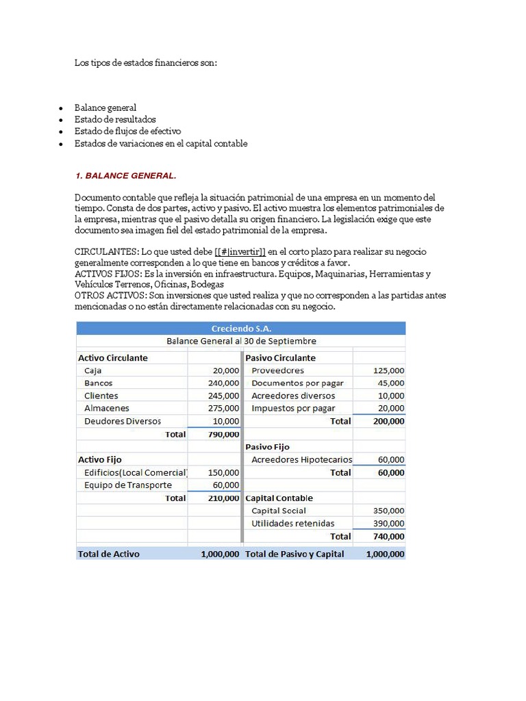 Ejemplo De Balance General Y Estado De Resultados De Una Empresa