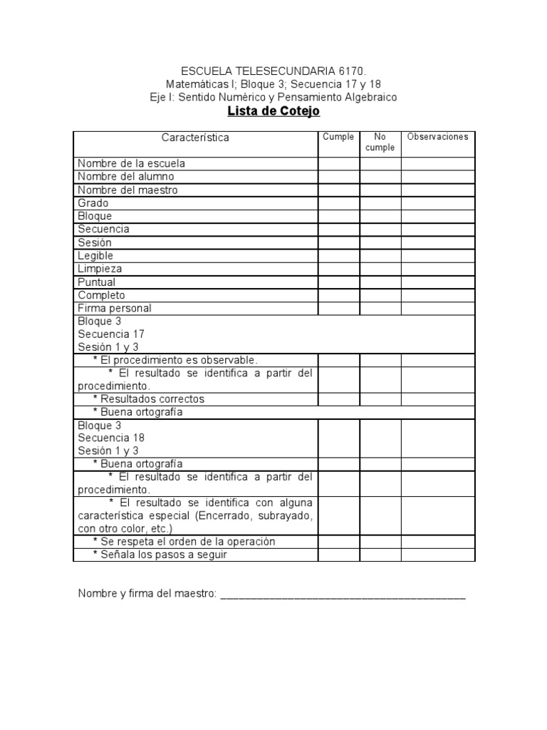 5 Lista De Cotejo De Matematicas