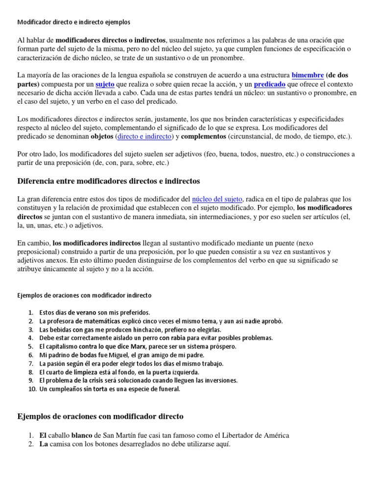 Modificador Directo E Indirecto Ejemplos Asunto Gramatica