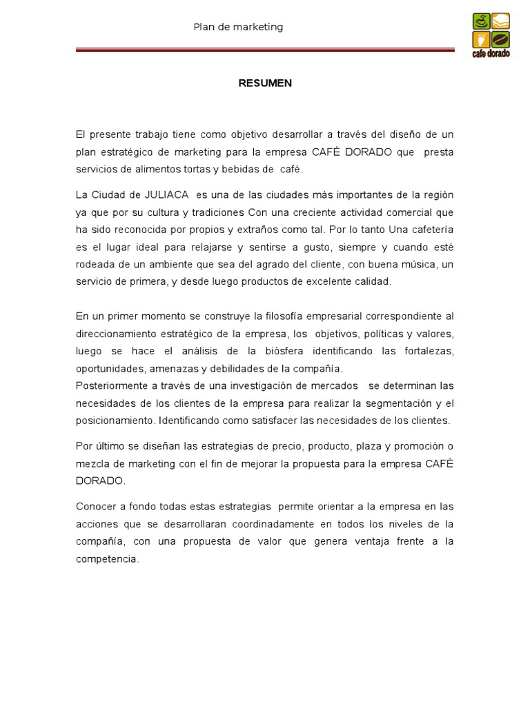 Plan De Marketing Cafe Dorado Investigacion De Mercado