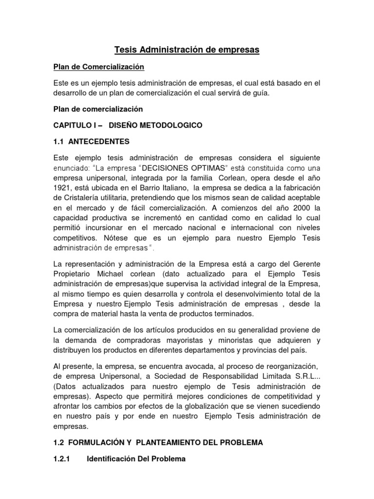 Ejemplo Tesis Administracion De Empresas Producto Negocio