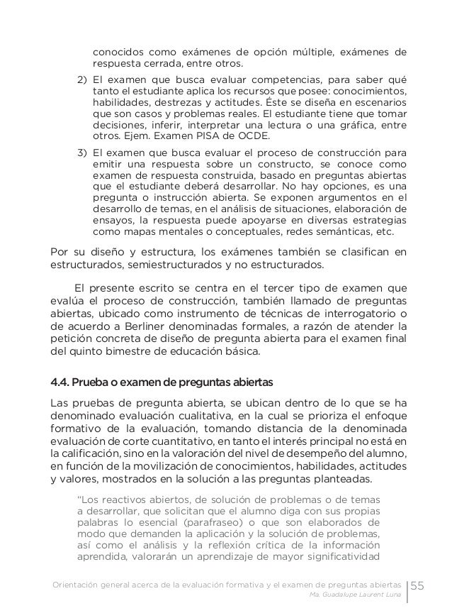 Examen De Preguntas Abiertas Orientacion Para Su Evaluacion