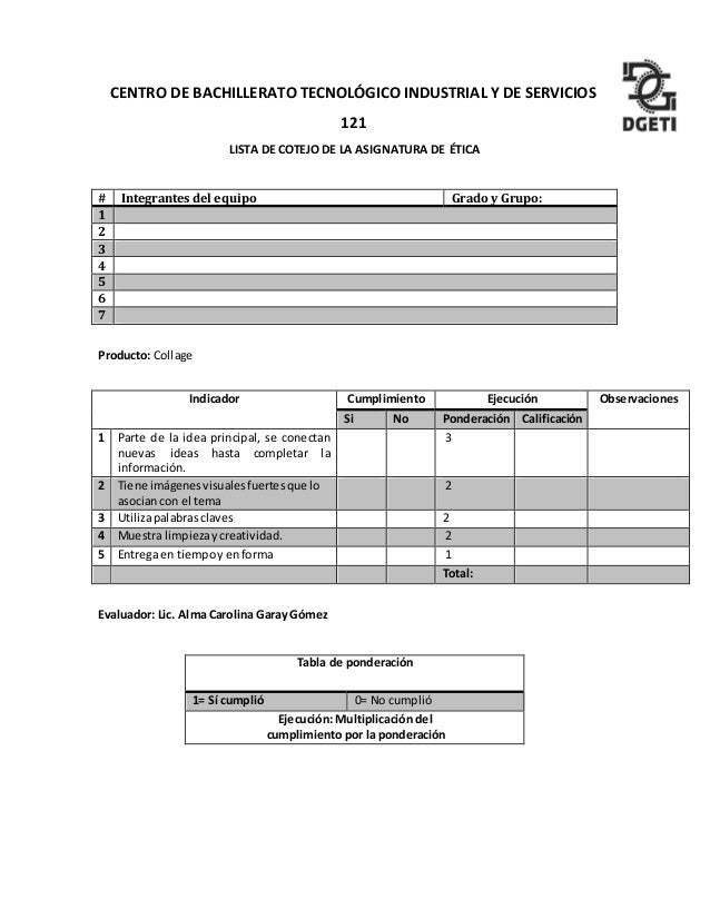 Lista De Cotejo Para Collage