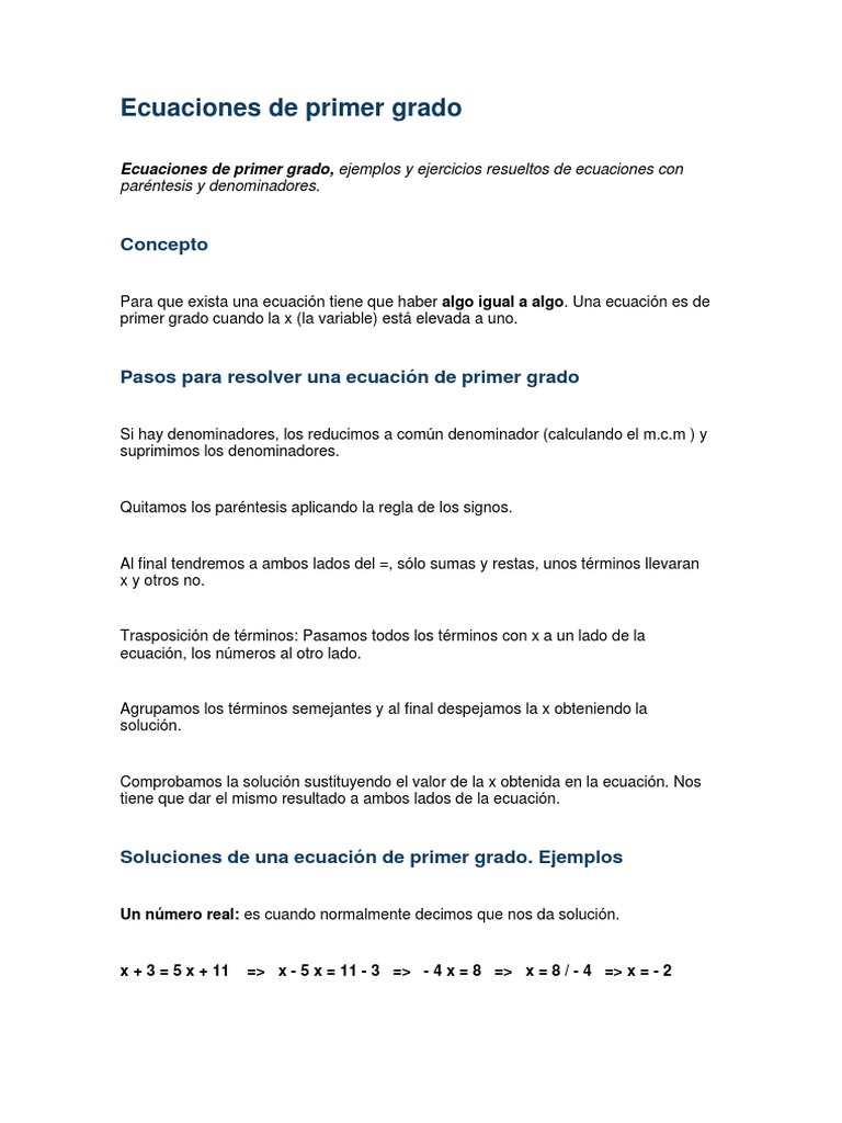 Ecuaciones De Primer Grado Ejercicios Resueltos Nx Power Lite